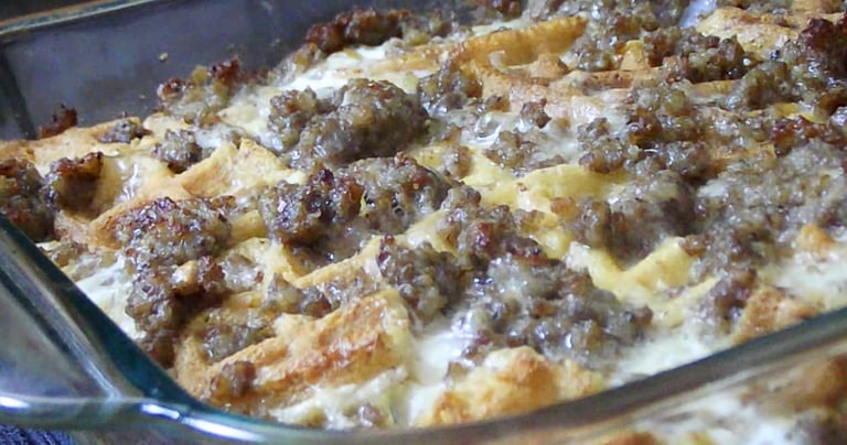 Sausage and Spinach Strata is a savory, layered casserole dish that's perfect for morning gatherings or holiday brunches. This Strata is layered with sausage, spinach, onions, and Monterey Jack cheese. Baked until golden brown on top, presenting a soft, comforting interior, each bite of this Sausage and Spinach Strata is a delightful, satisfying experience.