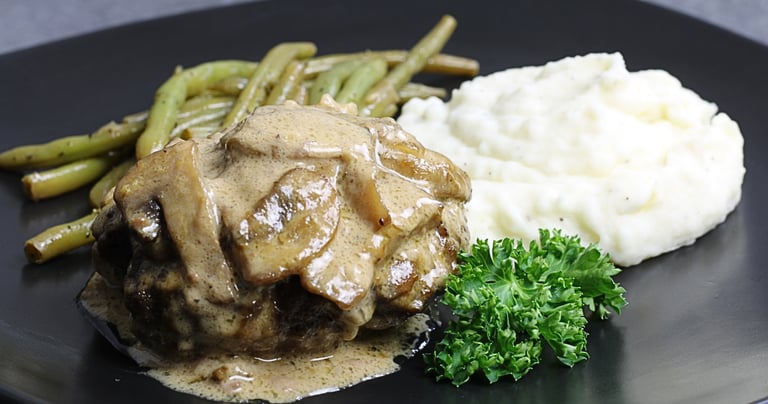 Homemade Salisbury steak patties, in a rich mushroom gravy, and two delicious sides that turn this dish into a complete, satisfying dinner. Whether you're searching for easy weeknight meals, budget‑friendly recipes, or classic American comfort food, this recipe delivers big flavor with simple ingredients.