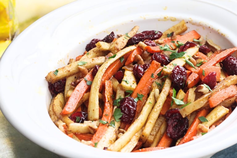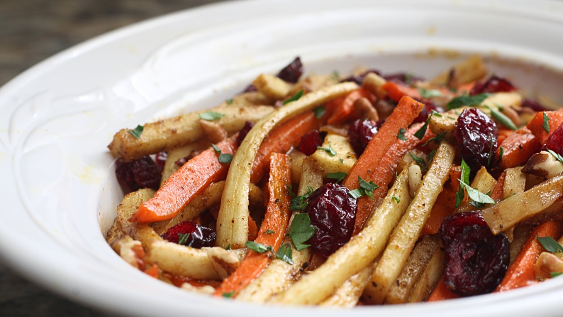 These oven-roasted root vegetables, seasoned with cumin, coriander, cinnamon, and smoked paprika are caramelized to perfection, bringing out their natural sweetness and golden crisp edges. These roasted carrots and parsnips will be a great addition to your holiday table spread.