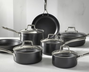 Modern aluminum cookware often comes with nonstick coatings or anodized finishes, which improve durability, resist corrosion, and prevent food from sticking. Hard-anodized aluminum offers a tougher surface that’s scratch-resistant and compatible with a variety of cooking techniques. Aluminum is also budget-friendly, offering high performance at a lower cost compared to premium materials. While it’s not naturally non-reactive, most aluminum cookware is treated or lined to prevent interaction with acidic foods. Overall, aluminum cookware delivers reliable performance, ease of use, and great value — making it a smart, versatile option for everyday cooking.