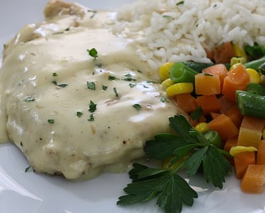 Chicken Fried Steak with Creamy Mushroom Sauce—a Southern classic elevated with rich, savory flavor. Perfectly chosen cube steak is dredged with a final coating of crushed corn flakes, fried to golden perfection, and served alongside a luscious creamy mushroom sauce that’s guaranteed to impress. Served with perfectly cooked rice and steamed mixed vegetables.